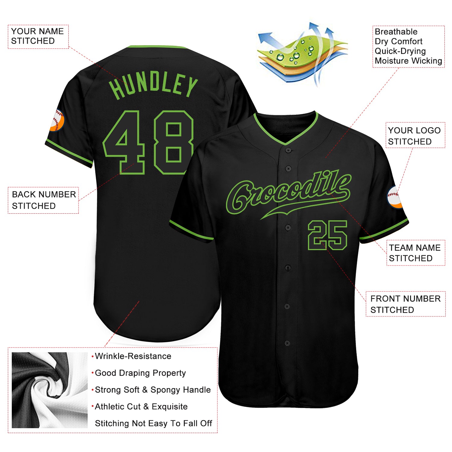 Each tailored baseball jersey is meticulously personalized with the following features: