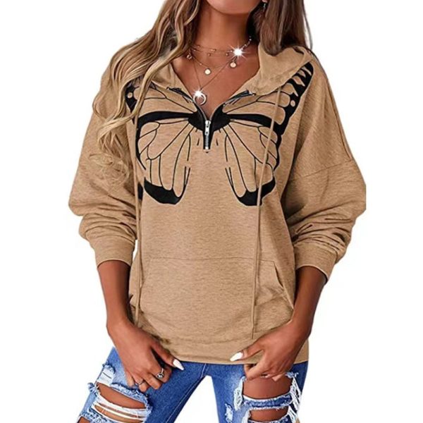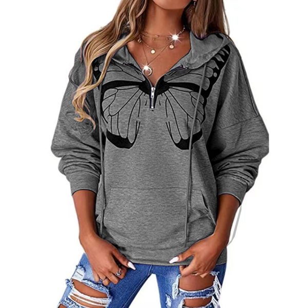 - 1 * Women’s Butterfly Print Hooded Zipper Sweatshirt