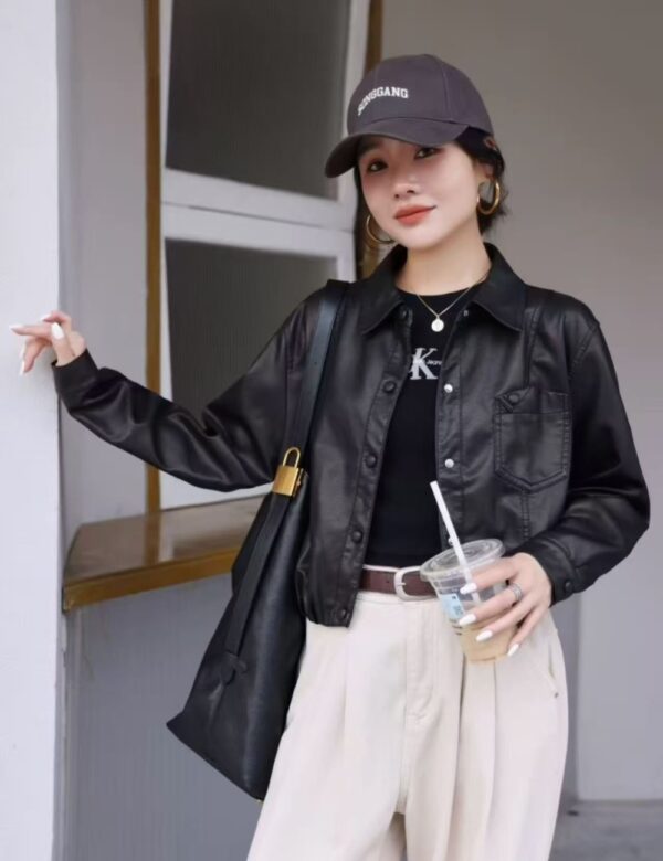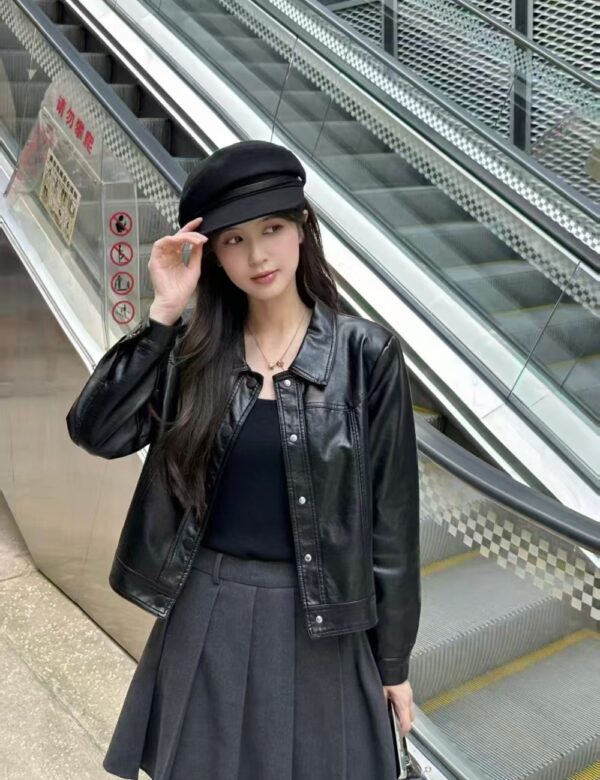 Duck down fox fur overcoat lantern sleeve leather coat for women