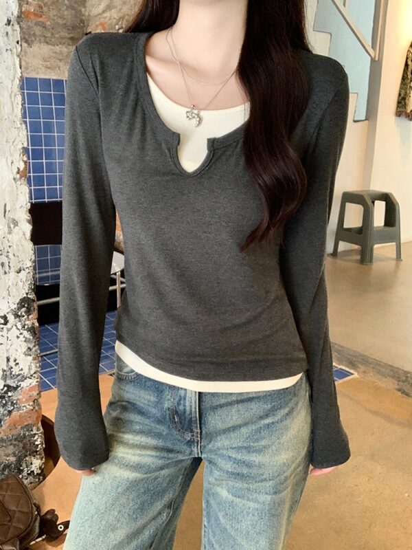 Spring Pseudo-two T-shirt mixed colors tops for women