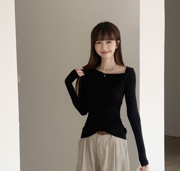 Blue T-shirt France style bottoming shirt for women