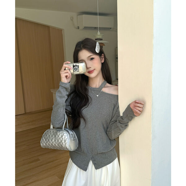 Bottoming long sleeve coat gray loose tops