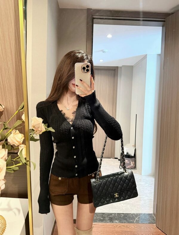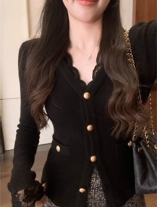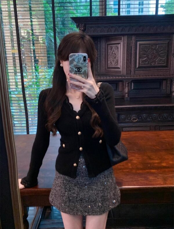 Stripe slim loose tops knitted chanelstyle cardigan
