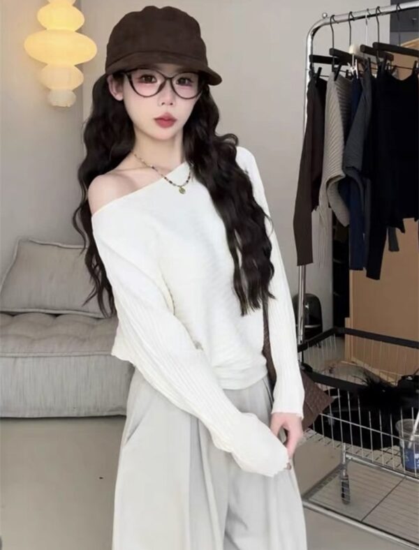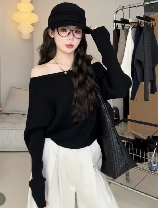 Long sleeve sweater sloping shoulder tops for women
