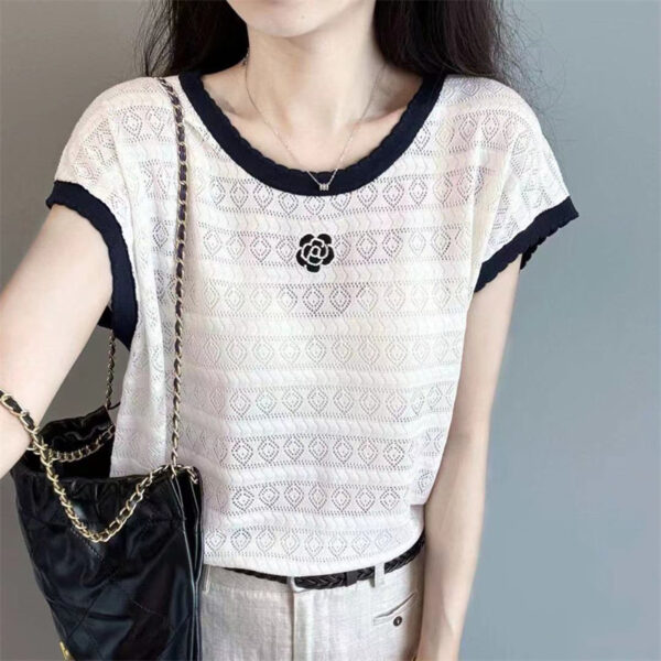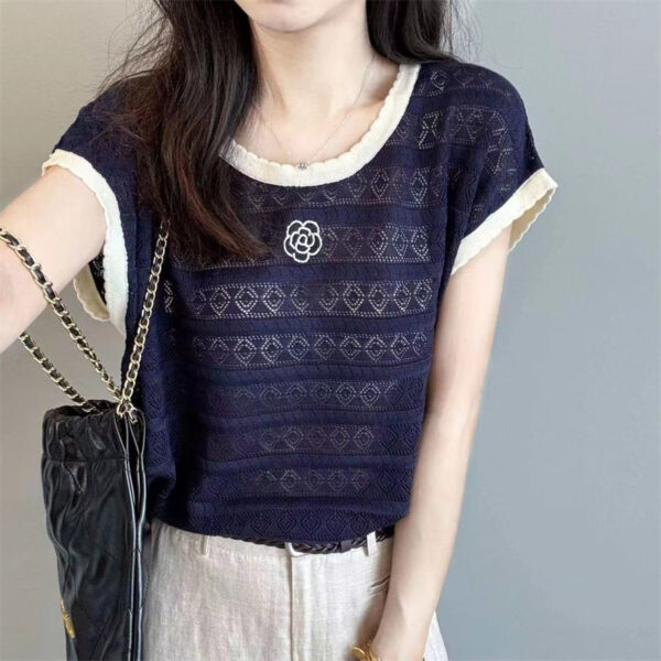 Short sleeve lace sweater thin hollow tops for women