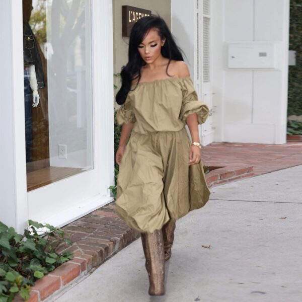 Puff sleeve irregular V-neck tops strapless sling shirt