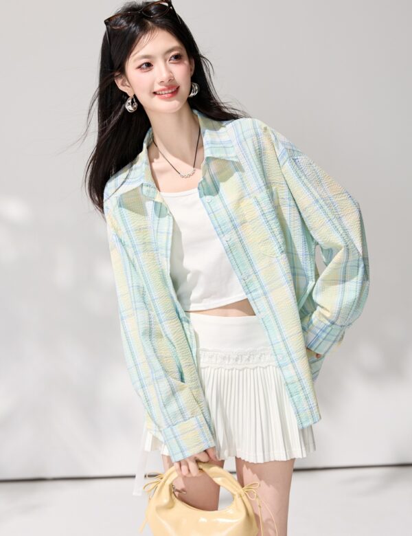Lazy plaid spring tops loose long sleeve shirt