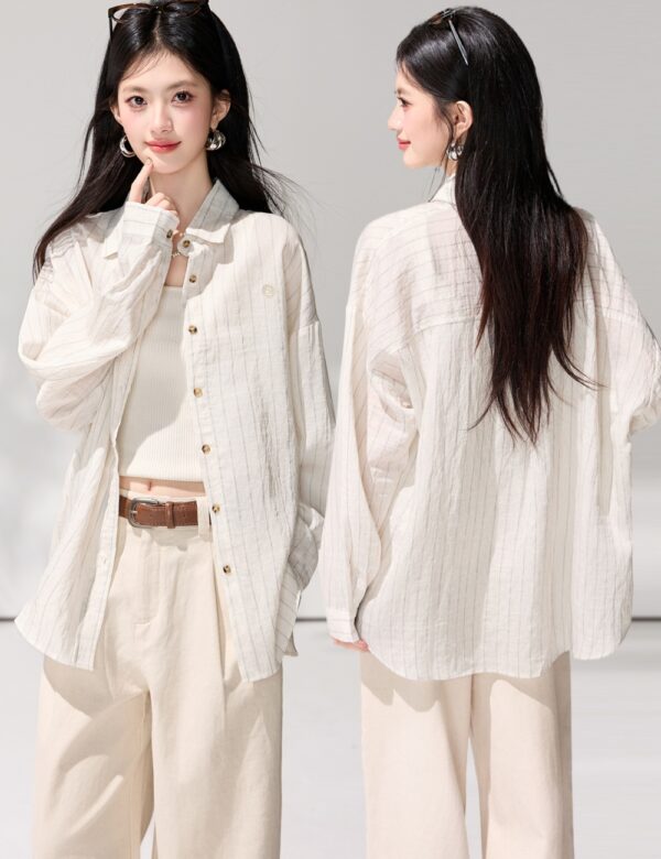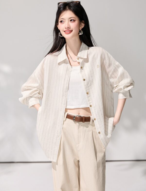 Wears outside loose tops spring stripe sun shirt for women