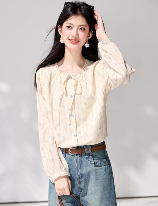Floral France style small shirt commuting shirt