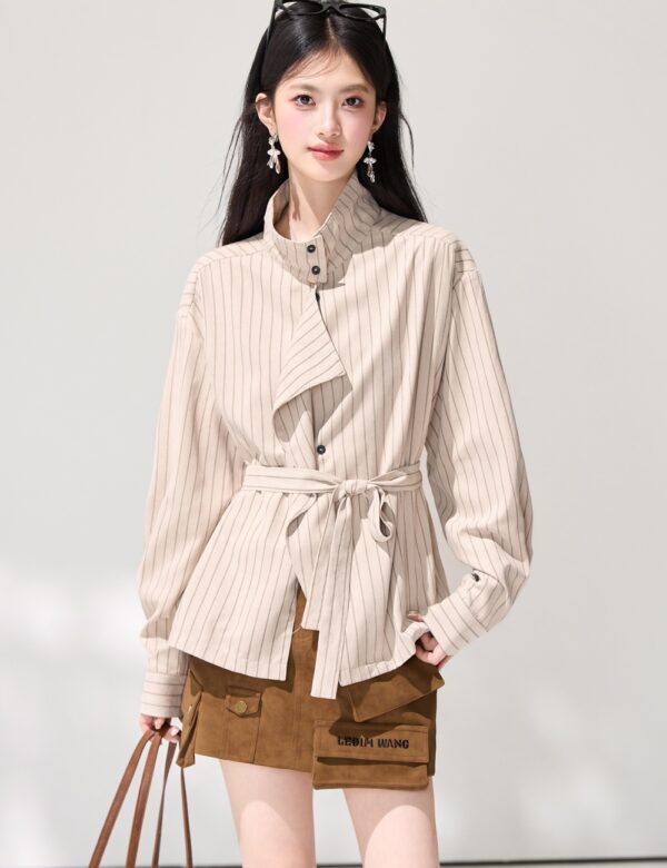 Western style long sleeve stripe tops spring commuting shirt
