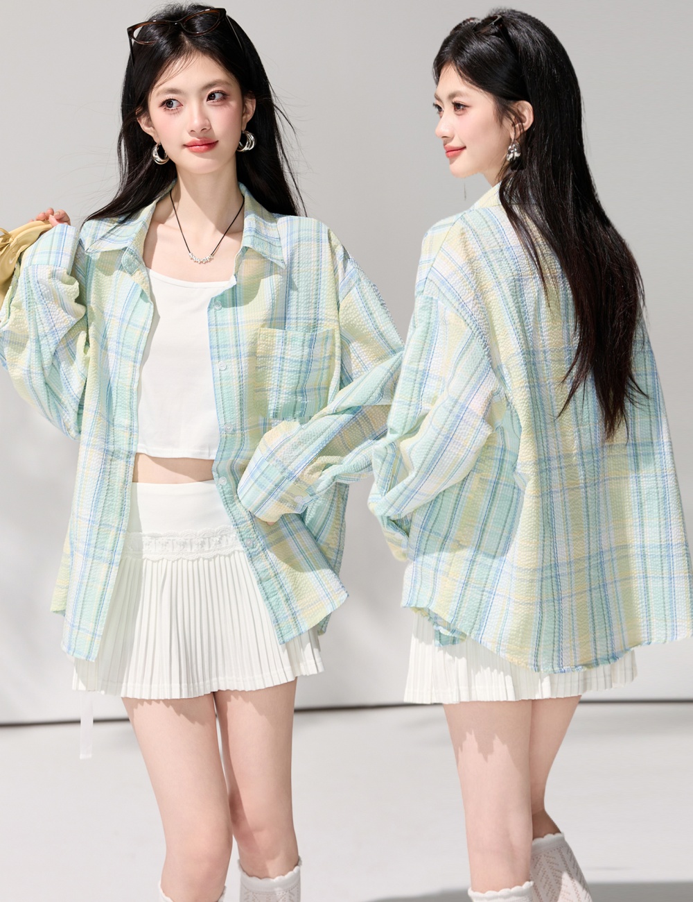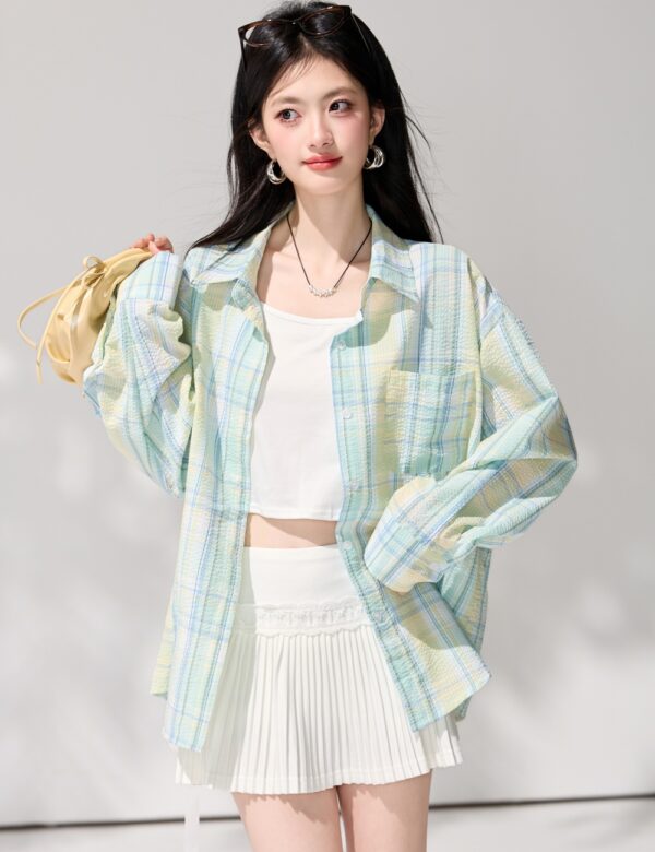 Lazy plaid spring tops loose long sleeve shirt