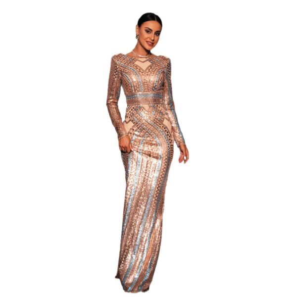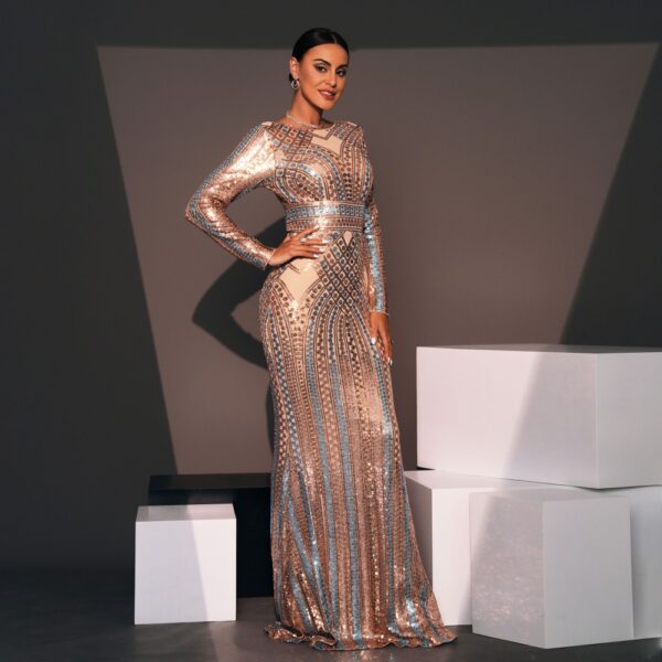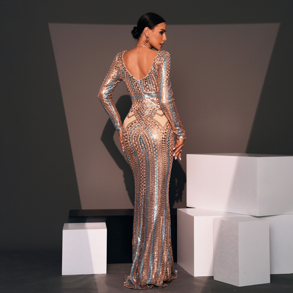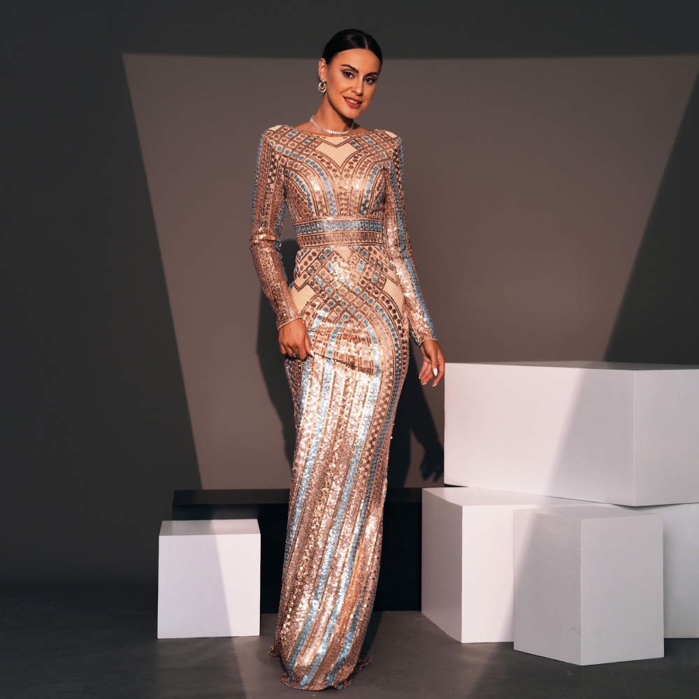 Sequins slim long evening dress banquet round neck dress